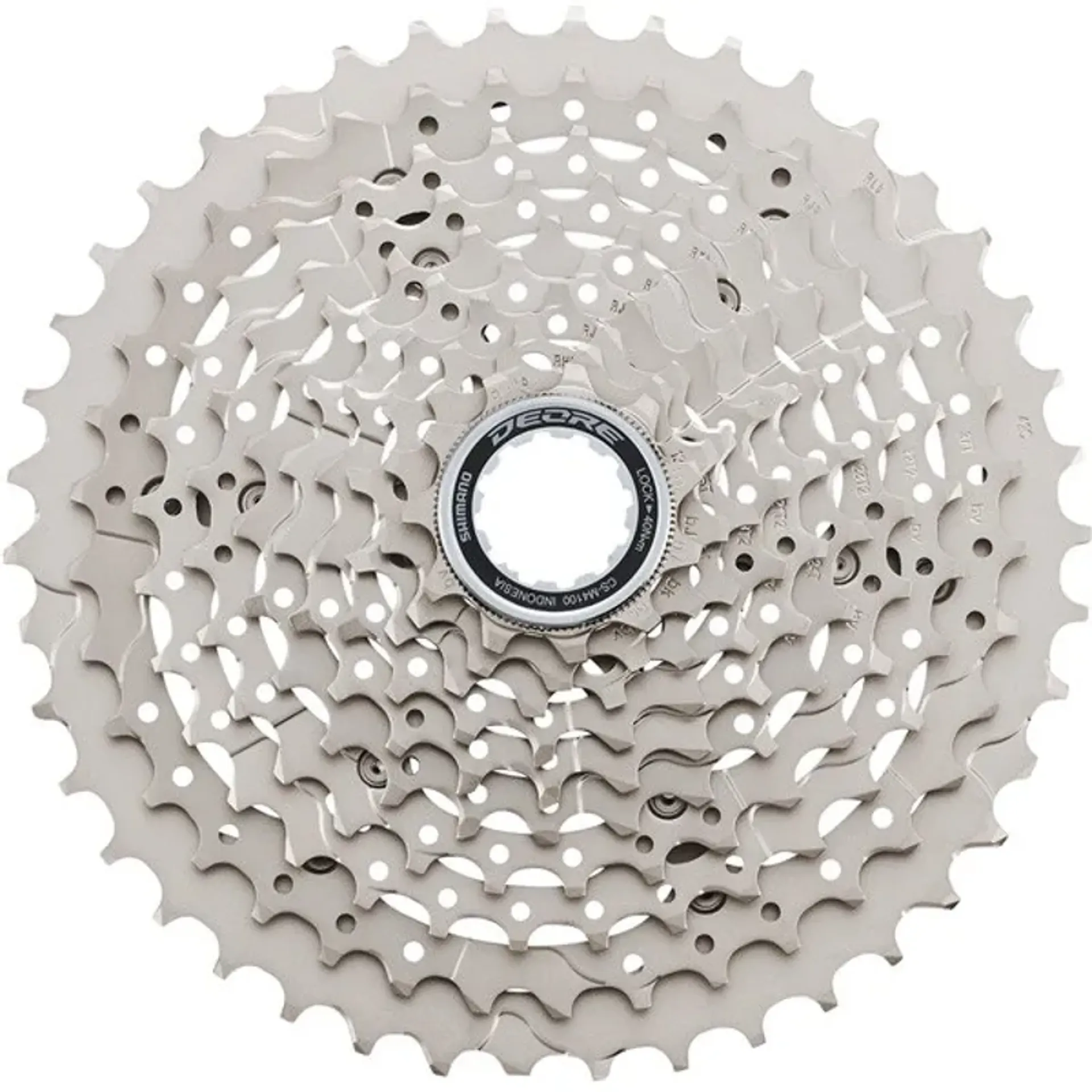 Deore m5100 11-speed cassette featuring light weight minimal design sprocket carrier.