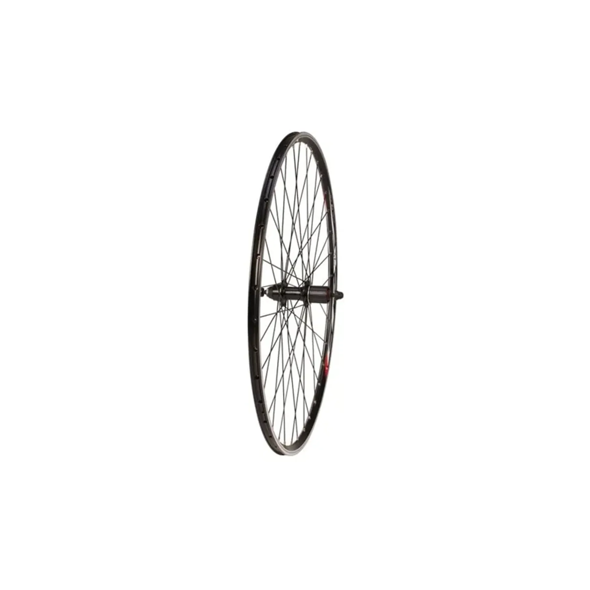 700C rear wheel featuring a Mach1 CFX rim. Designed for 8-11 speed cassettes, it includes a spacer for 8, 9, or 10 speed compatibility and a QR hub.
